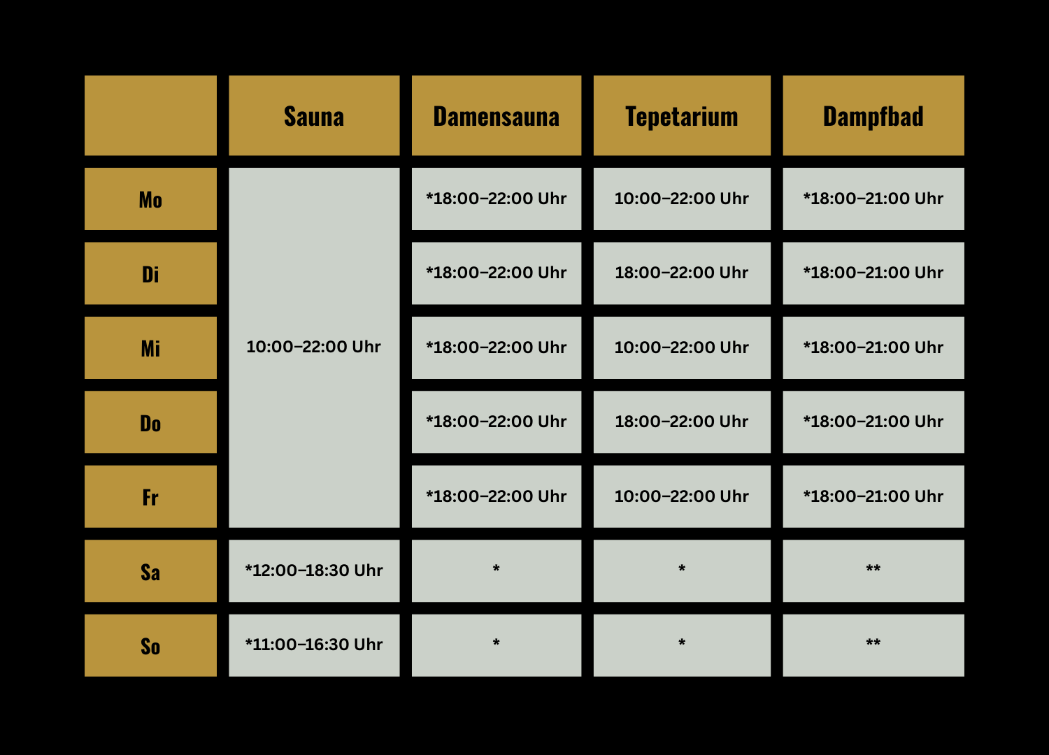 *Die jeweiligen Kabinen können auf Wunsch ab 2-3 Personen auch früher eingeschaltet werden.